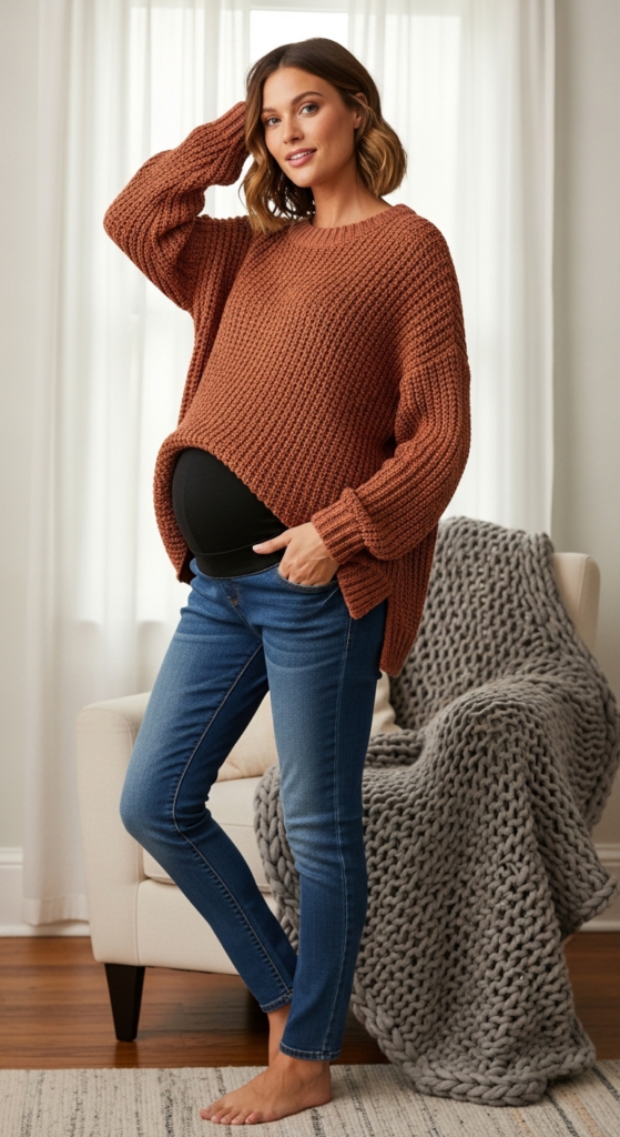 7. Oversized Sweater and Maternity Jeans