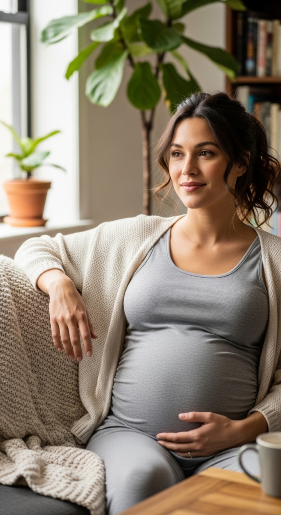 Styling insight: A well-chosen accessory can instantly make a simple maternity outfit feel intentional and chic.