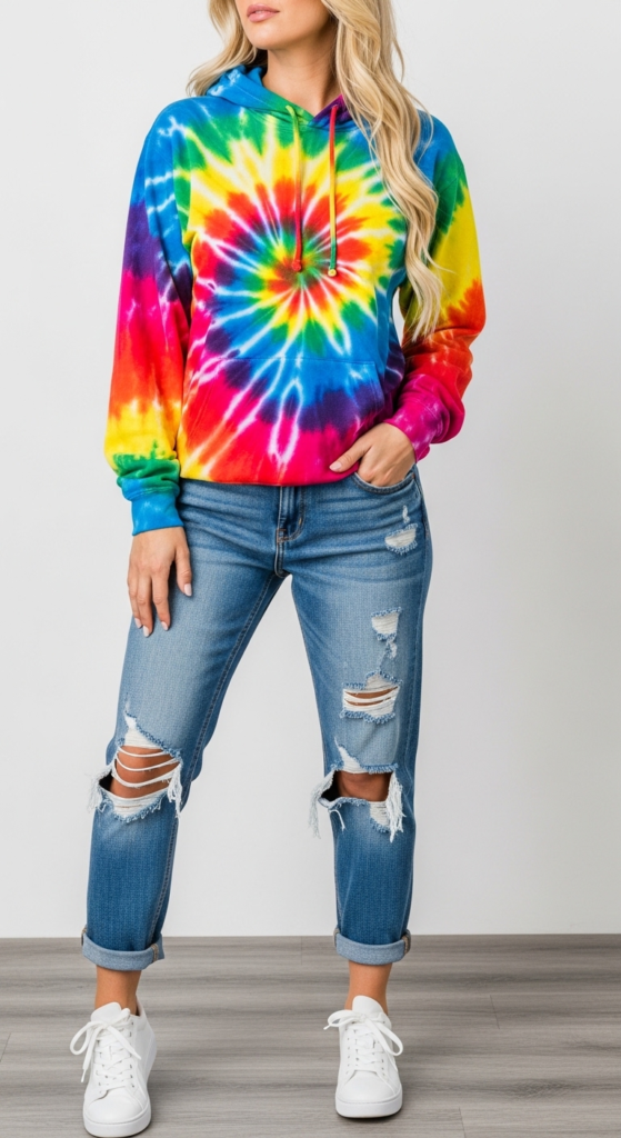 5. Tie-Dye Hoodie with Distressed Jeans