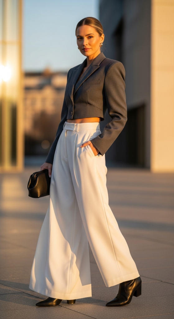 15. Cropped Jacket and Wide-Legged Trousers