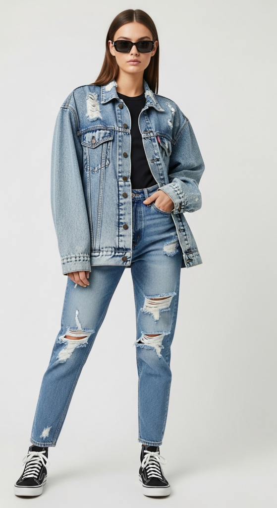 3. Acid-Wash Denim Jacket and Ripped Jeans