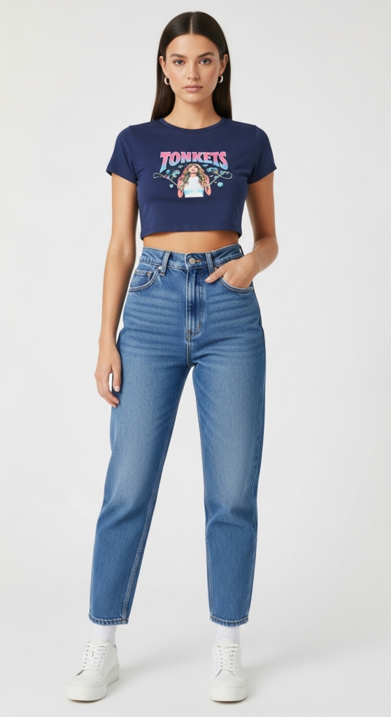 5. High-Waisted Mom Jeans and Crop Top