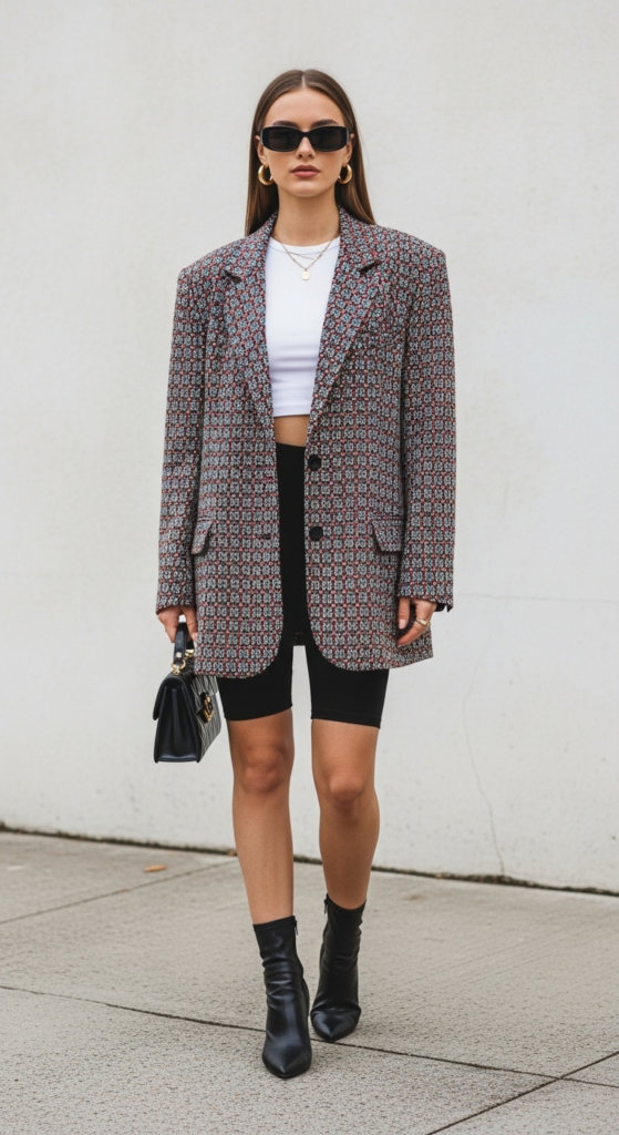 10. Oversized Blazer and Bicycle Shorts
