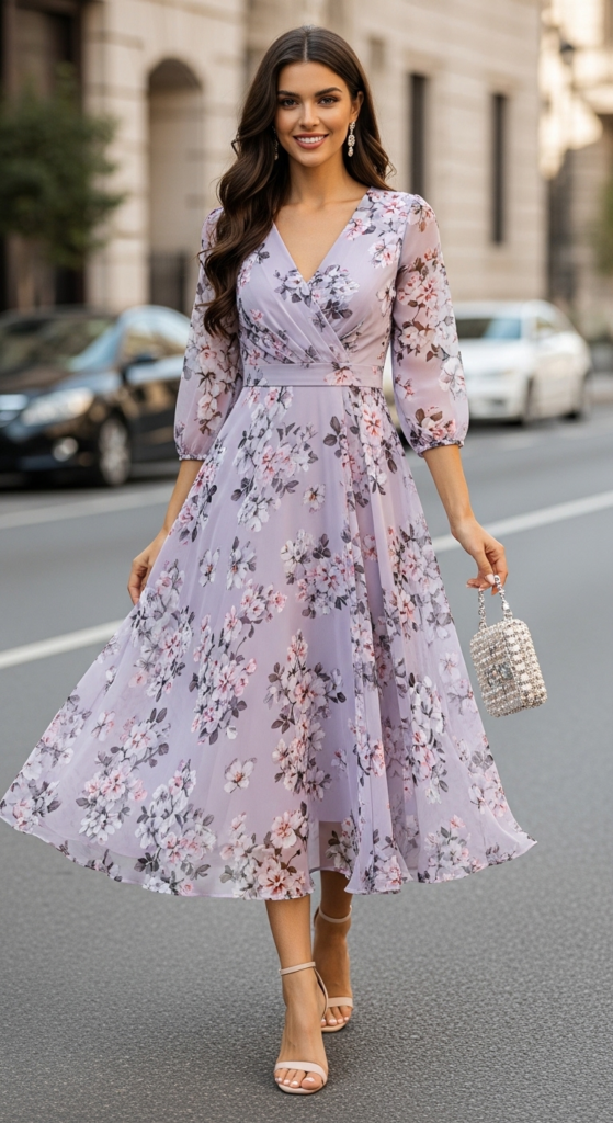 To style this dress, opt for nude block heels that enhance the outfit without overwhelming it. A delicate necklace and a few stacked bracelets can add subtle flair. This look is perfect for garden parties, luncheons, or any daytime event, ensuring you remain stylish and comfortable throughout the day.