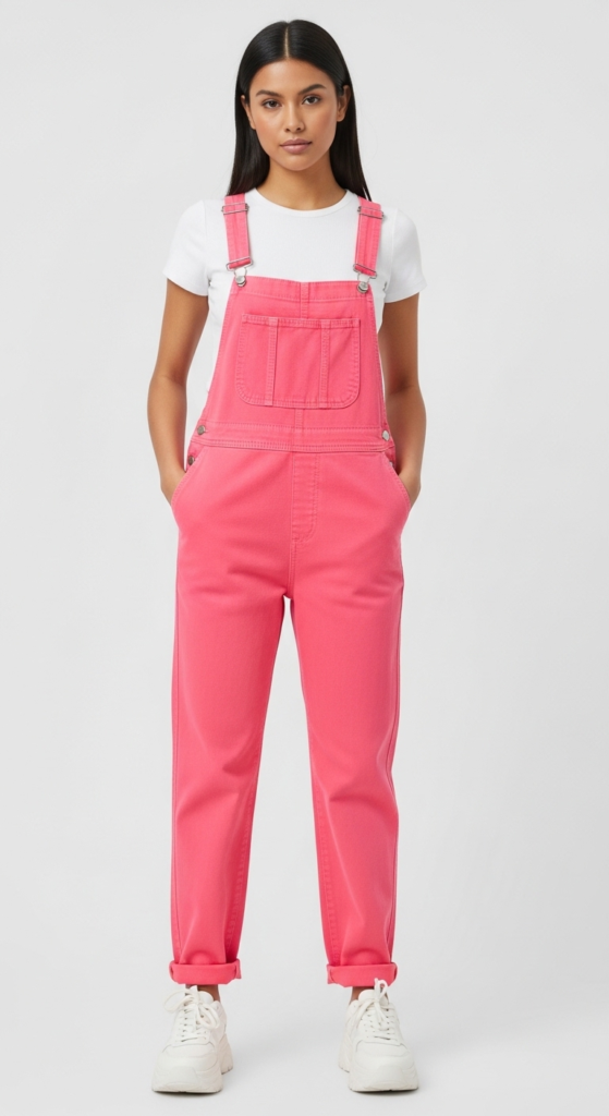 The Neon Overalls are a bold choice, crafted from lightweight, breathable fabric that provides comfort and ease of movement. The bright pink hue instantly grabs attention, while the relaxed fit ensures a laid-back, playful silhouette. The overall style adds a touch of nostalgia while remaining contemporary and trendy.