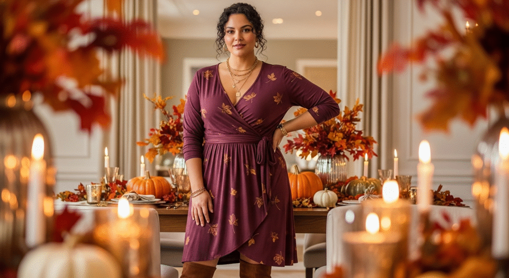 Thanksgiving style blends warmth, ease and polished comfort. Outfits built with soft textures, flattering structure and rich seasonal tones support long gatherings while keeping confidence high. Versatile pieces such as sweater dresses, wide-leg jeans, slip silhouettes and tailored layers move easily between casual family meals, lively Friendsgiving evenings and more formal restaurant plans. Plus-size options, practical accessories and thoughtful footwear ensure every woman finds combinations that feel stylish, functional and comfortable from first toast to last slice of pie.