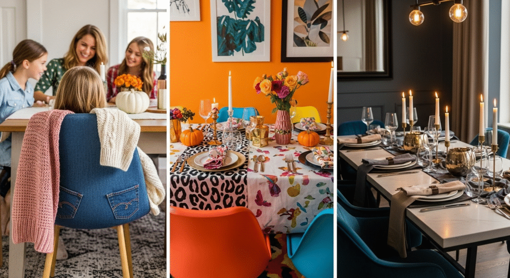 Dress codes vary by setting. Family dinners lean casual-polished with knits and denim. Friendsgiving gatherings allow more playful or trendy pieces. Restaurant celebrations call for elevated fabrics such as satin, velvet or crepe. Comfort remains central across all settings.